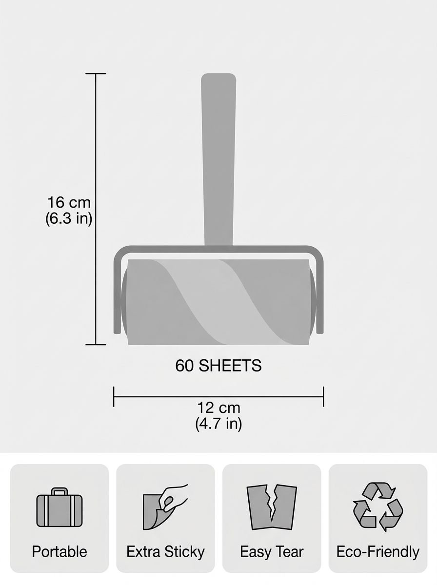 ● High-quality adhesive sheets pick up even the finest particles without damaging delicate fabrics or leaving sticky residue behind.